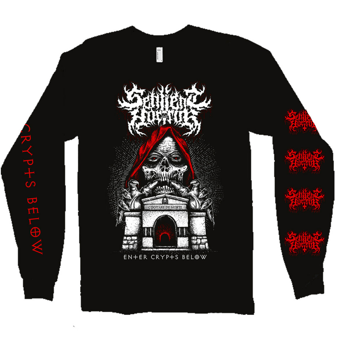 Printed on Gildan Ultra Cotton Tee. Logo and Design on front with incredible art from Patrik Tegnander of Chainsaw Design!